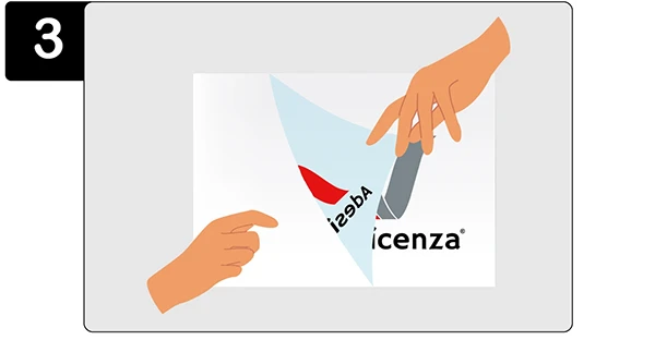 Posiziona accuratamente lo sticker sulla superficie evitando la formazione di bolle